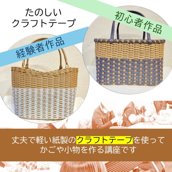 丈夫で軽い紙製のクラフトテープを使って、かごや小物を作る講座です。