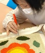 ハンドミシンに毛糸を通し、キャンバス地にステッチして、本格的な玄関マットやじゅうたん、タペストリーやクッションカバーを作ります。