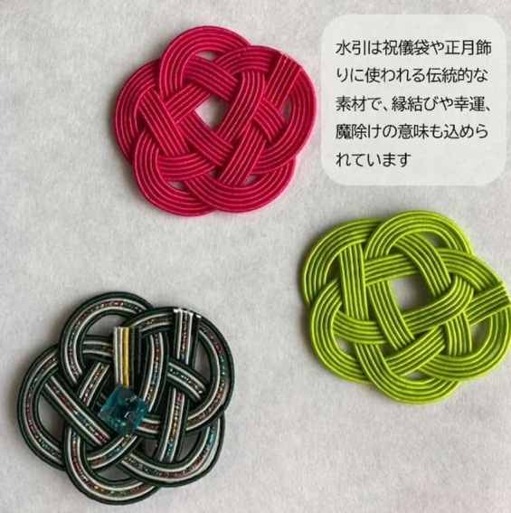 さらにストラップやブローチなどにアレンジして楽しんでいる方も多く水引の使い方が広がっています。