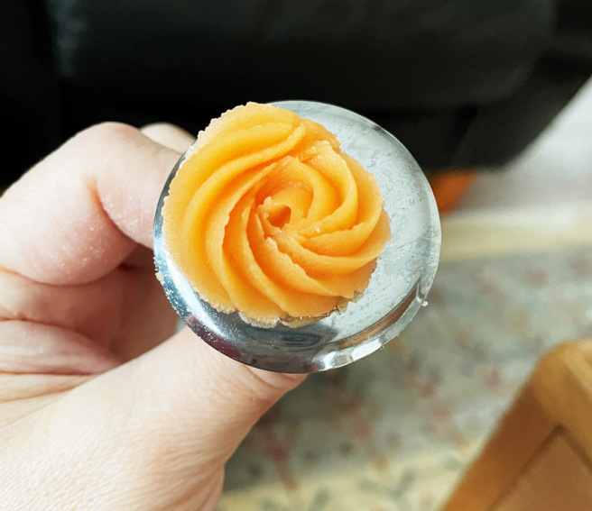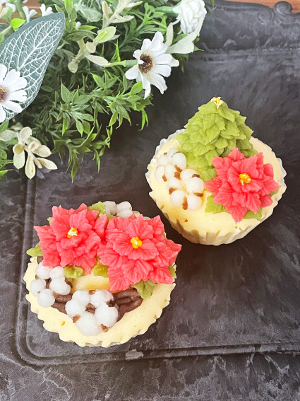 白あんで作ったクリームを花の形に絞る「あんフラワー」スイーツ作りのレッスンです。