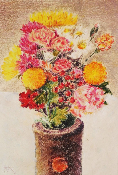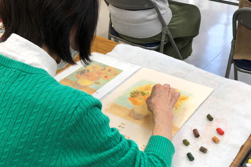 講師の作品の模写から始め、パステルの技術を身につけたのち、好きなモチーフへ進みます。