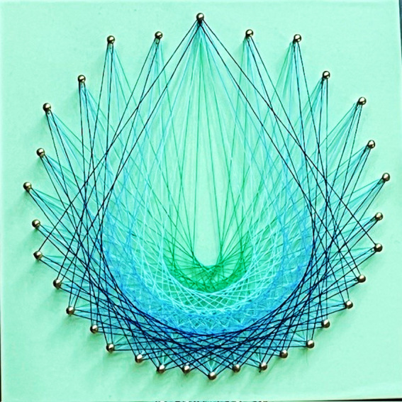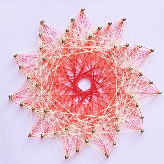 板に釘を打ち、糸をかけて、図柄を生み出す糸かけアート。