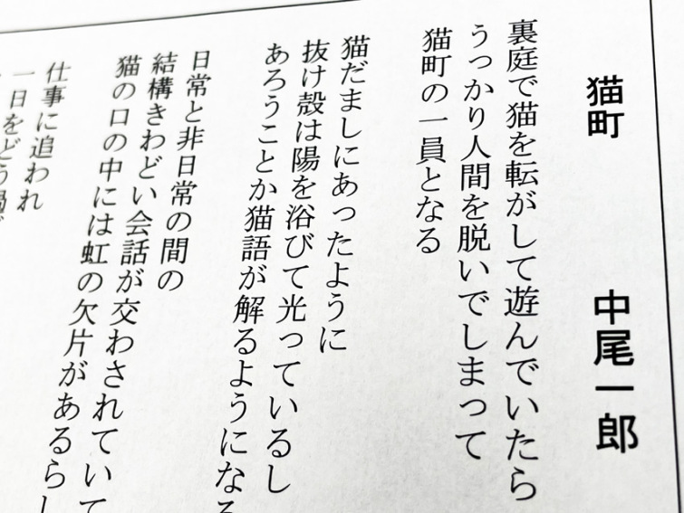 ★上写真:〝詩壇の芥川賞〟と呼ばれるH氏賞候補になった中尾さんの第2詩集「猫町diary」より