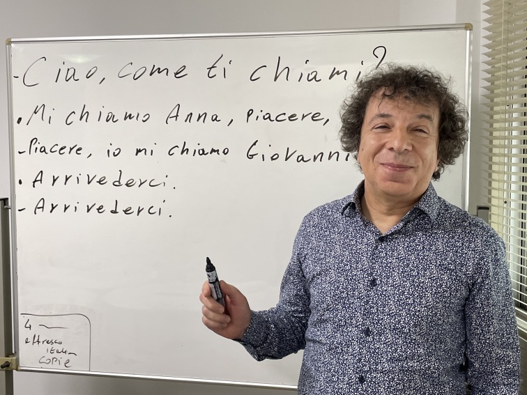 「イタリアに興味ある方、イタリア語を学びたい方なら、どなたでも。私のレッスンは、しゃべれるようになることを目標に、まずは聞いて、次に読んで、会話を練習します。イタリア語の読みは日本人には簡単。文法は言葉を使いながら覚えましょう」とヴァレリオさん。