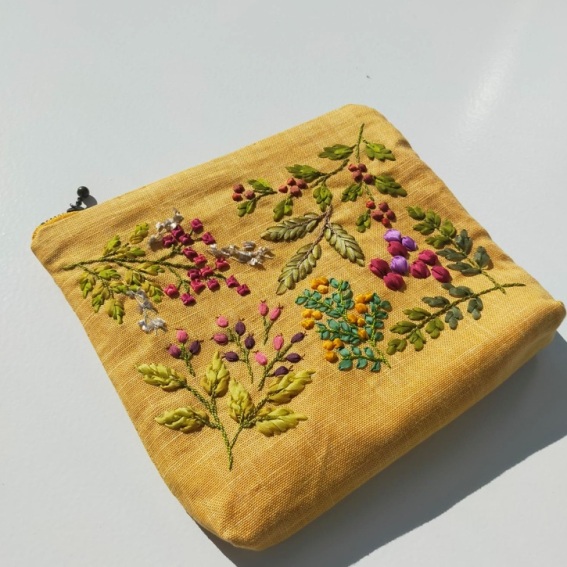 3回のレッスンで、ミニバッグ、ランチョンマットなどの小物が2つ完成します。