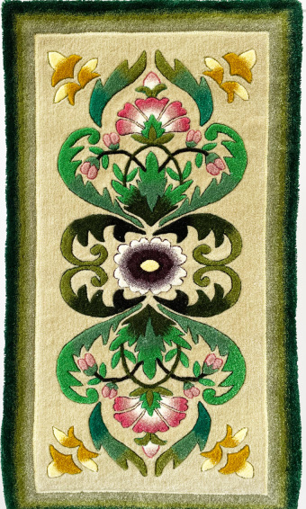 ハンドミシンに毛糸を通し、キャンバス地にステッチして、本格的な玄関マットやじゅうたん、タペストリーやクッションカバーを作ります。