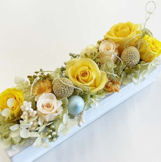 生花を加工することで、美しい色と形を長く保つプリザーブドフラワー。