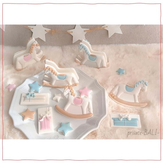 粉砂糖と卵白を混ぜたクリームをデコレーションしてアイシングクッキーを作ります。