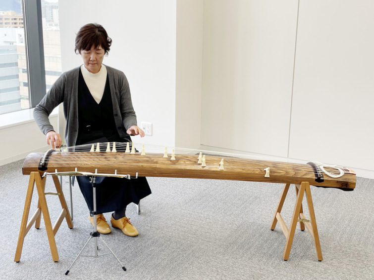 箏が用意され、椅子に座って30分間の個人レッスンを受けられます。
