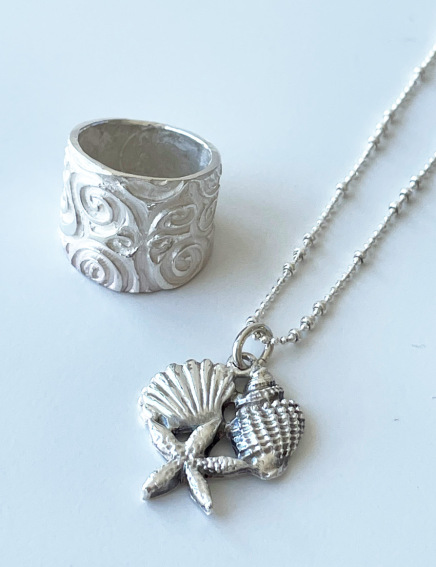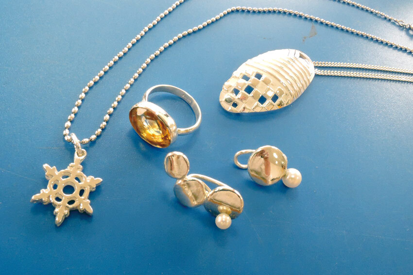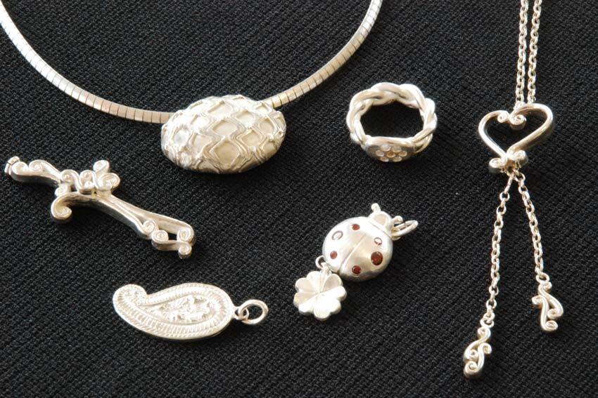 粘土遊びのように、純銀粘土を伸ばしたり、型押ししたり。焼けば純度99・9%のシルバーに。