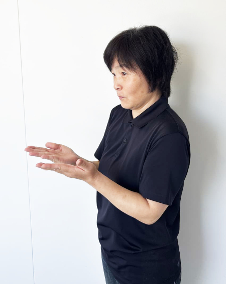 手話を一つ一つ用いて、山本さんと会話をしたり、