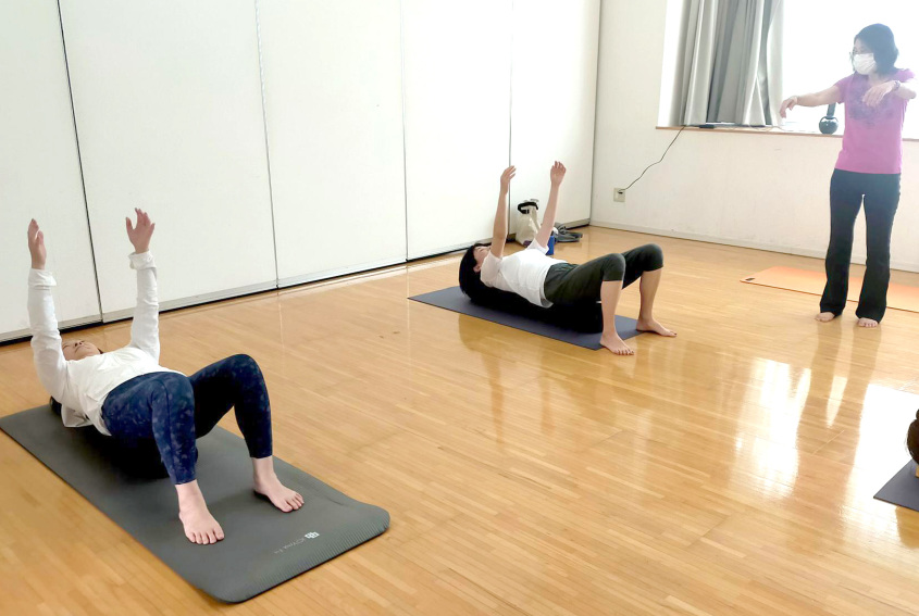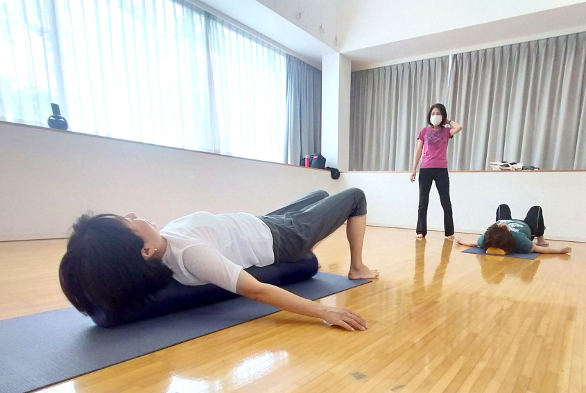 ●体験レッスン…体験料1870円、教材費はなし、持ち物はストレッチポール(なければ無料レンタル)・ヨガマット(なければバスタオル)・タオル・飲み物・動きやすい服装